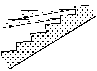 2 = Echelle-Gitter: Das Echellegitter enthält 316 Linien pro Millimeter und wird in den Ordnungen 40 bis 61 benutzt. Das Echelle-Gitter ist als sogenanntes Blaze-Gitter ausgebildet, d.h. die Gitter-Furchen sind als Stufen ausgebildet und die Vorderseiten der Stufen sind verspiegelt, so daß das Gitter den einfallenden Strahl optimal in die gewünschte Ausfallsrichtung zurückspiegelt.