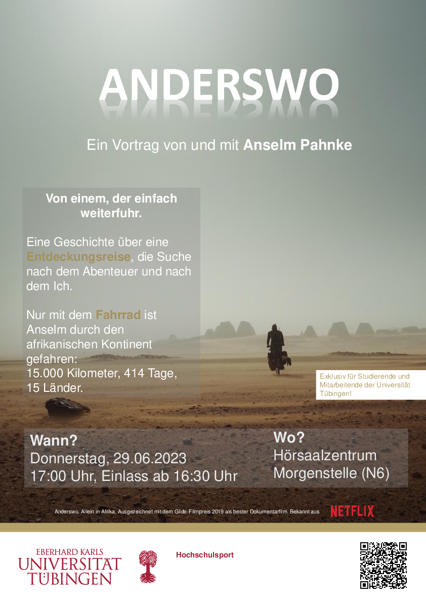 Aus den persönlichen Aufnahmen von Anselm Pahnke entsteht nach seiner Rückkehr einen Kinofilm, produziert mit kleinem Budget und ausgestrahlt bei Netflix. Aus einer kleinen Idee mit einer kleinen Kamera ist eine große Geschichte entstanden und der erfolgreichste deutsche Dokumentarfilm der letzten Jahre. Mit rund 100.000 Kinozuschauern ist Anderswo. Allein in Afrika einer der erfolgreichsten Dokumentationsfilme 2019 und wurde bei der Filmkunstmesse in Leipzig mit dem Gilde Filmpreis in der Kategorie “Bester Dokumentarfilm 2019” ausgezeichnet.