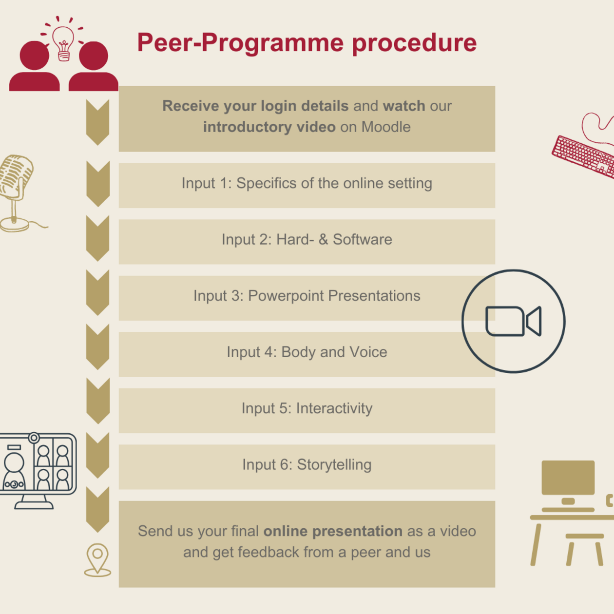 Learn how to deal with the peculiarities and challenges of online presentations and how to utilise the peculiarities of the digital environment.
