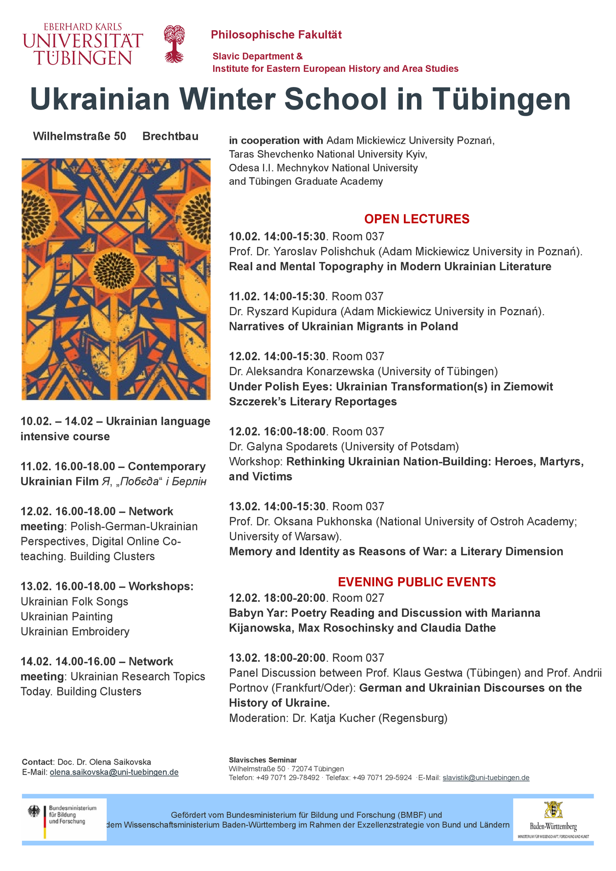 Zielgruppe: Studierende und Nachwuchswissenschaftler/innen sowie alle an der ukrainischen Sprache, Literatur und Kultur Interessierten.
