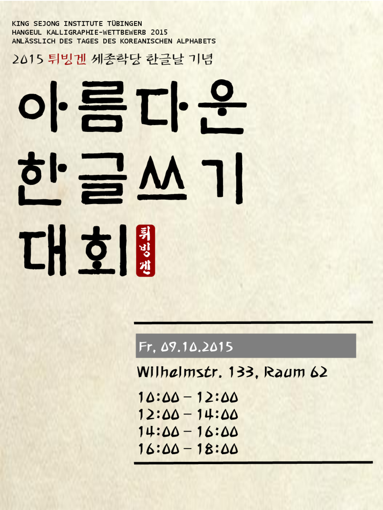 16-18 h AUTORENLESUNG MIT SCHRIFTSTELLER SONG Sokze