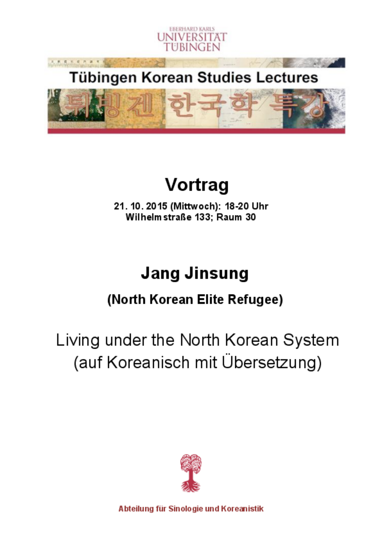 Der südkoreanische Schriftsteller SONG Sokze liest aus seinem Buch "Das Dorf am Fluss" (im Original "위풍당당"). Die Lesung wird dabei zweisprachig sowohl auf Koreanisch als auch auf Deutsch erfolgen.
