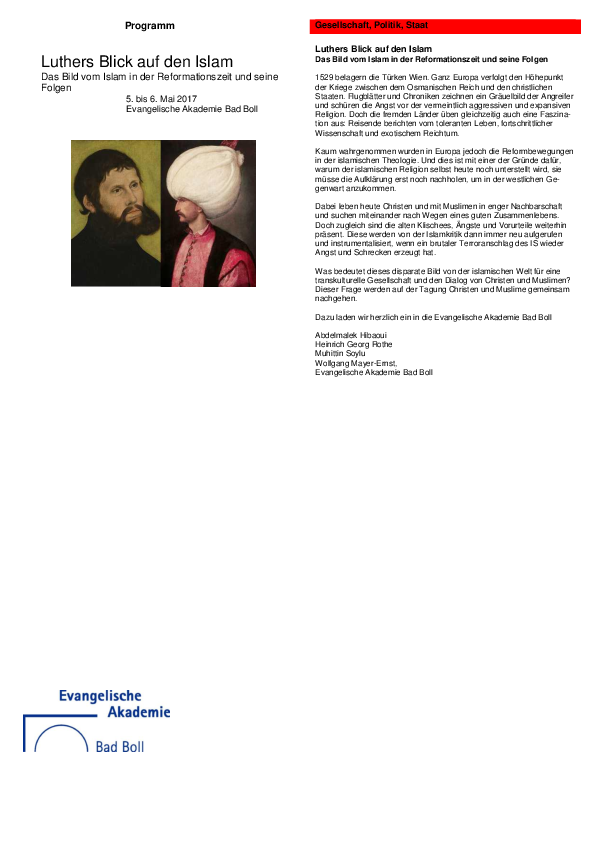 Tagung "Luthers Blick auf den Islam" (05.05 - 06.05 / Bad Boll)