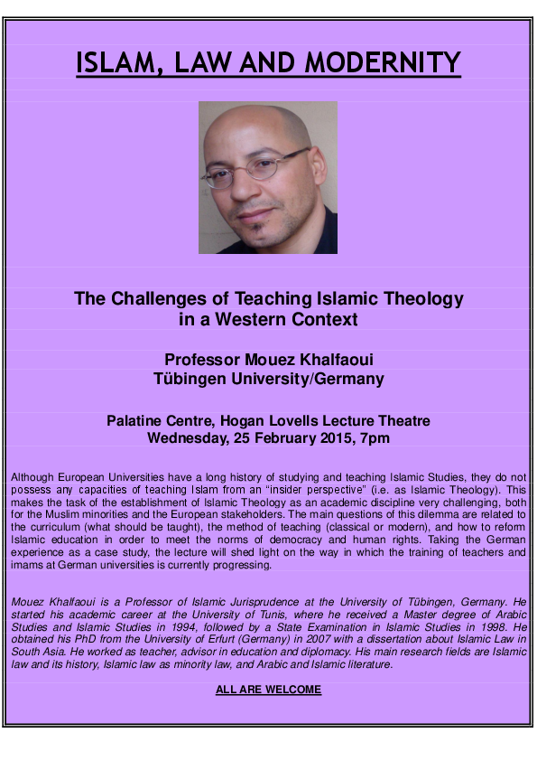 Vortrag: Islam, Law and Modernity - The Challenges of Teaching Islamic Theology in a Western Context, Prof. Dr. Mouez Khalfaoui