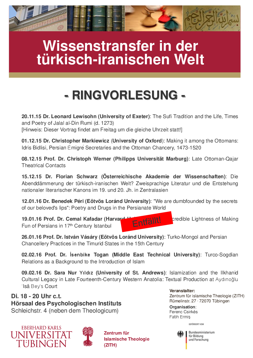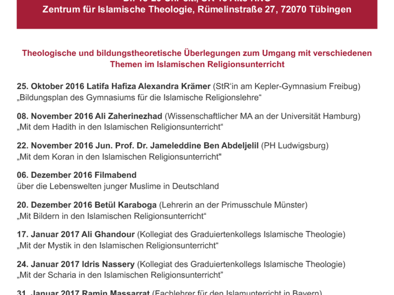 Ringvorlesung Wintersemester 2015/16: "Islamische Bildungsarbeit"