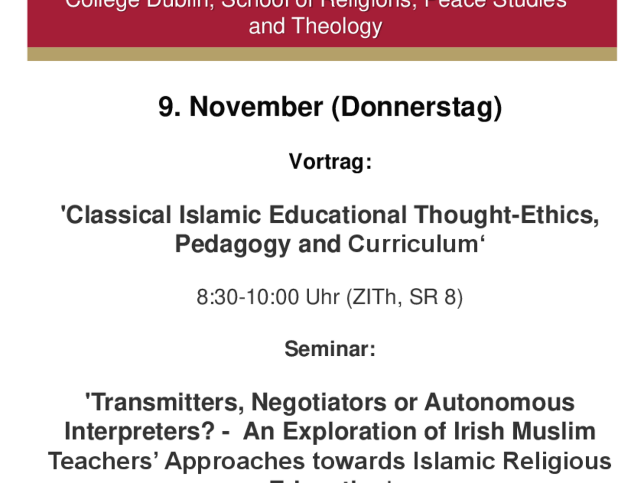 18.6.2013, 12.00 Uhr im großen Seminarraum des Zentrums für Islamische Theologie