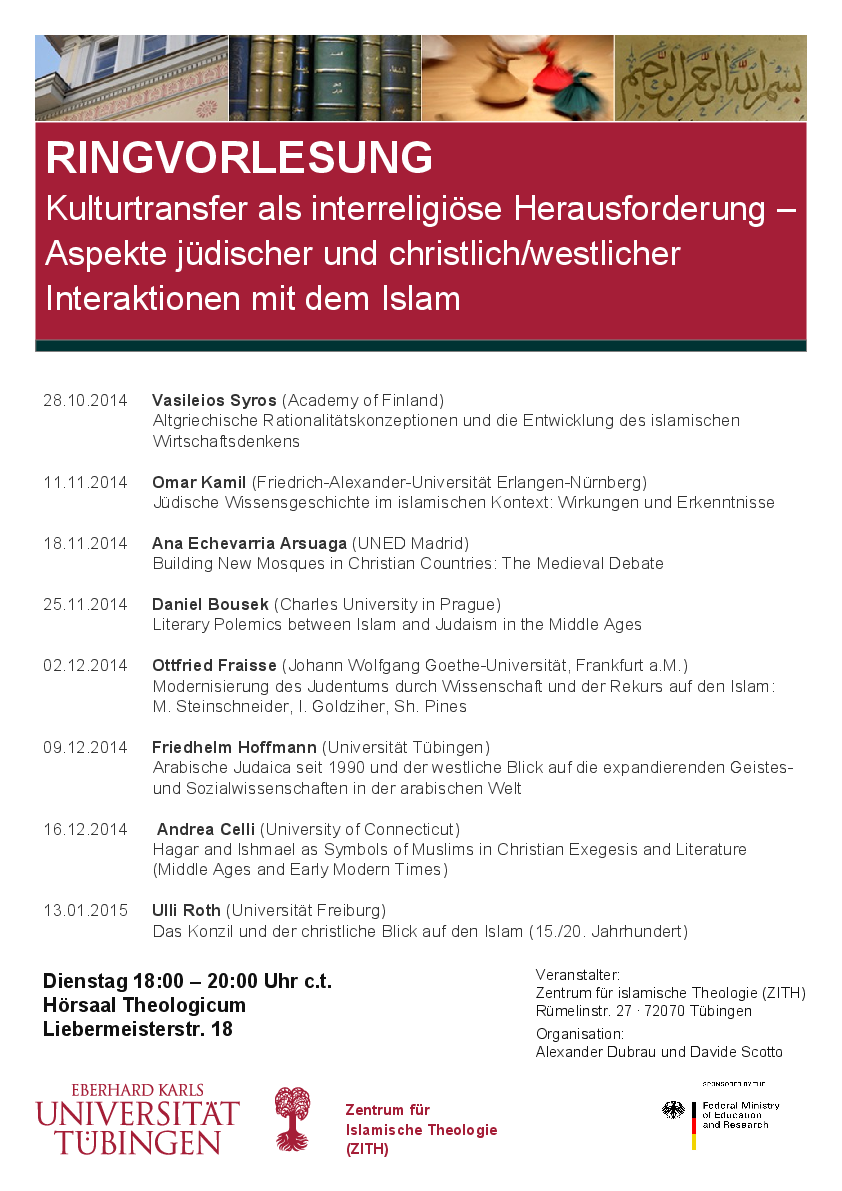 RINGVORLESUNG "Kulturtransfer als interreligiöse Herausforderung – Aspekte jüdischer und christlich/westlicher Interaktionen mit dem Islam"