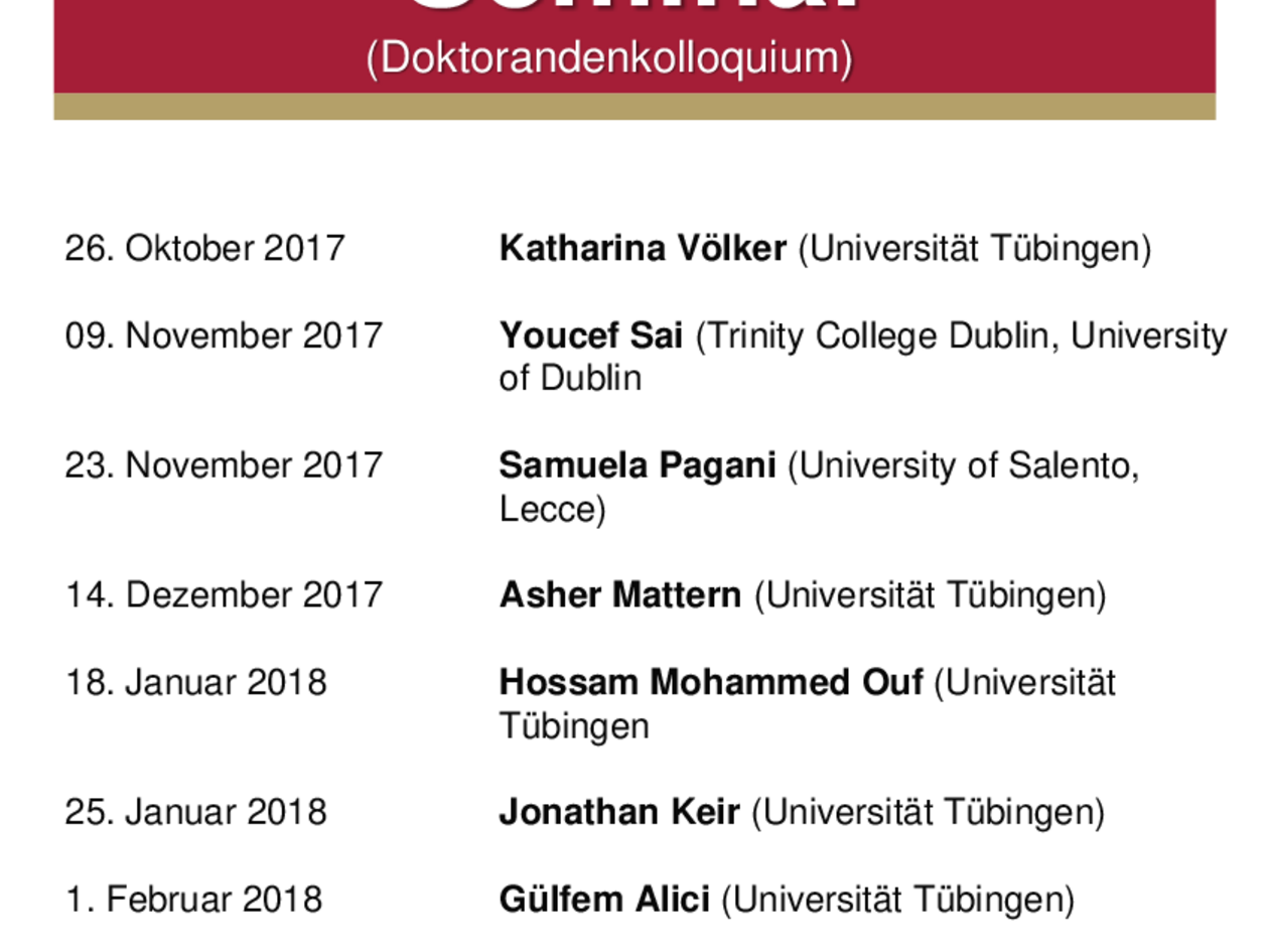 Dienstag, 12. Juli 2016, 11:30 Uhr, Seminarraum 13, Alte HNO Universität Tübingen