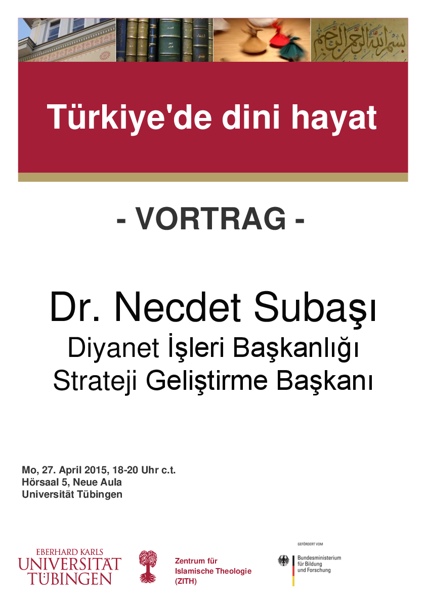 Dr. Necdet Subaşı, Mo. 27. April 2015, 18-20 Uhr c.t. Hörsaal 5, Neue Aula