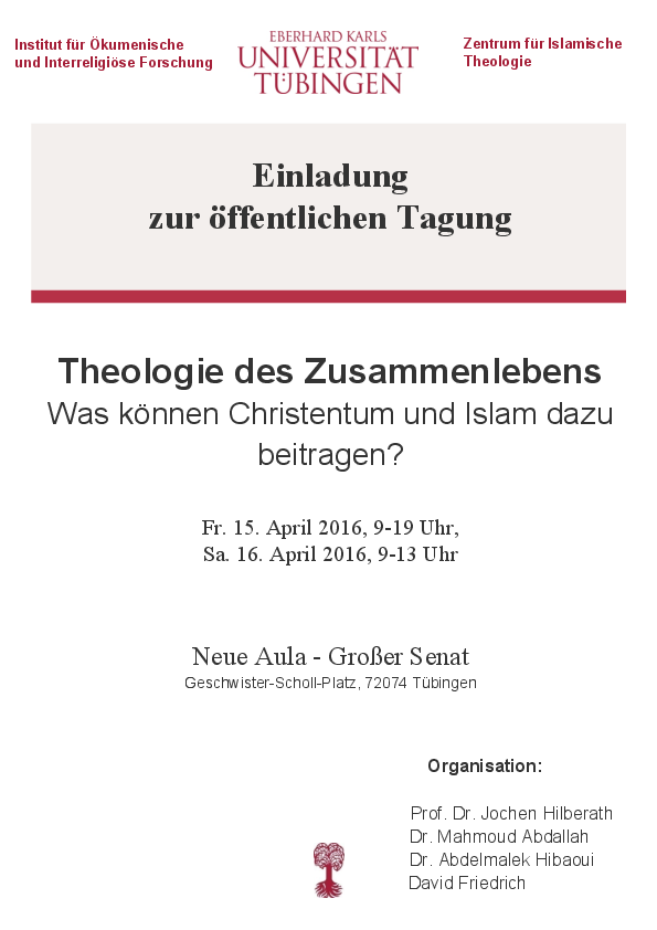 Öffentliche Tagung: Theologie des Zusammenlebens Was können Christentum und Islam dazu beitragen?
