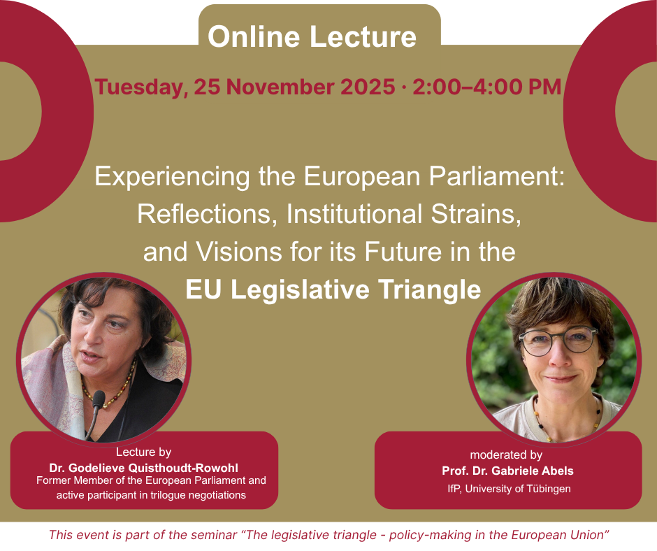 Format: The event will be moderated by Prof. Dr. Gabriele Abels, Director of the Institute of Political Science and Chair of Comparative Politics and European Integration at the University of Tübingen. Dr. Quisthoudt-Rowohl will deliver a presentation, followed by a Q&A session.