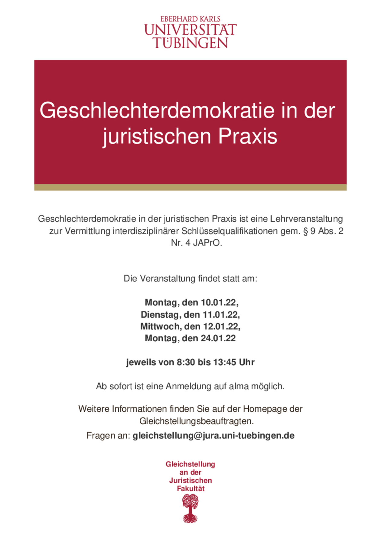 Der Vortrag richtet sich an Interessierte aus allen Fachbereichen. Er findet im Rahmen der Auftaktveranstaltung für das Athene Mentoring Programm für qualifizierte Nachwuchs-wissenschaftlerinnen an der Juristischen Fakultät statt, das im WS 2022/2023 startet.