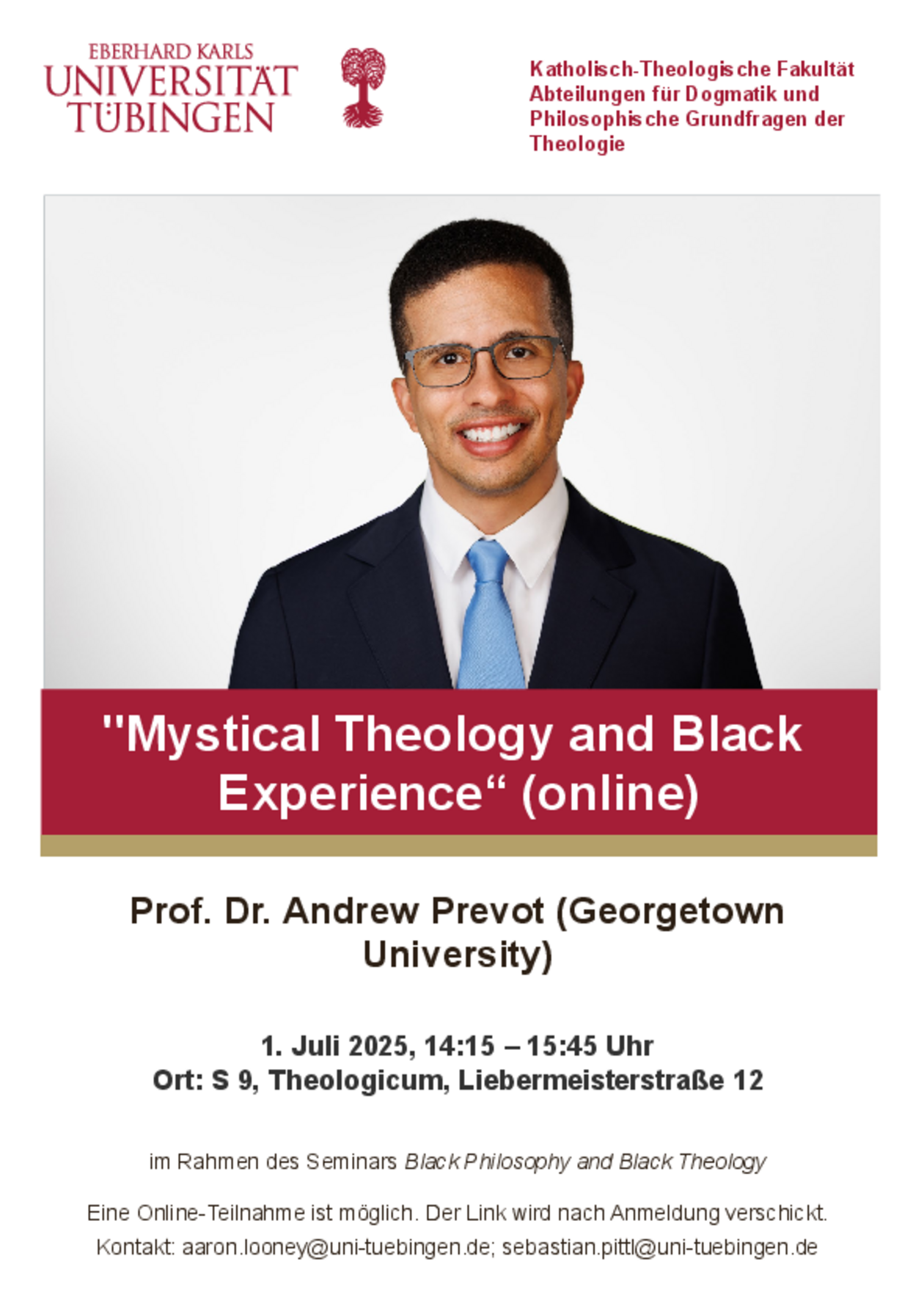 Im Rahmen des Seminars “Breaking Bread: Black Philosophy and Black Theology”  hält Professor Dr. Andrew Prevot von der Georgetown University einen Online-Vortrag zu “Mystical Theology and Black Experience”.