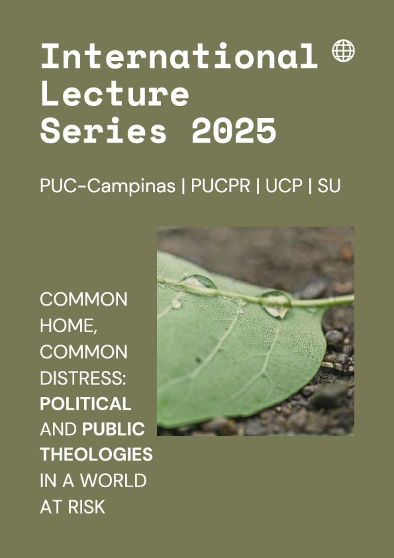Under the responsibility of PUCPR, PUC-Campinas, Universidade Católica Portuguesaand Stellenbosch University, the currentedition, from February to May, will focus onthe relationship between religion and theclimate discussion.