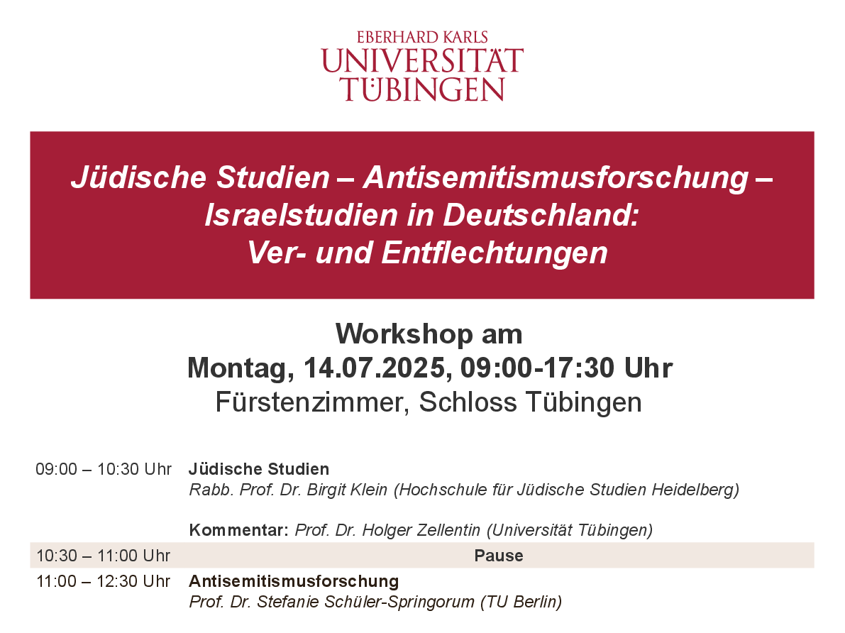 Monday, July 14, 2025, 9:00-17:30 in the Fürstenzimmer, Tübingen Castle