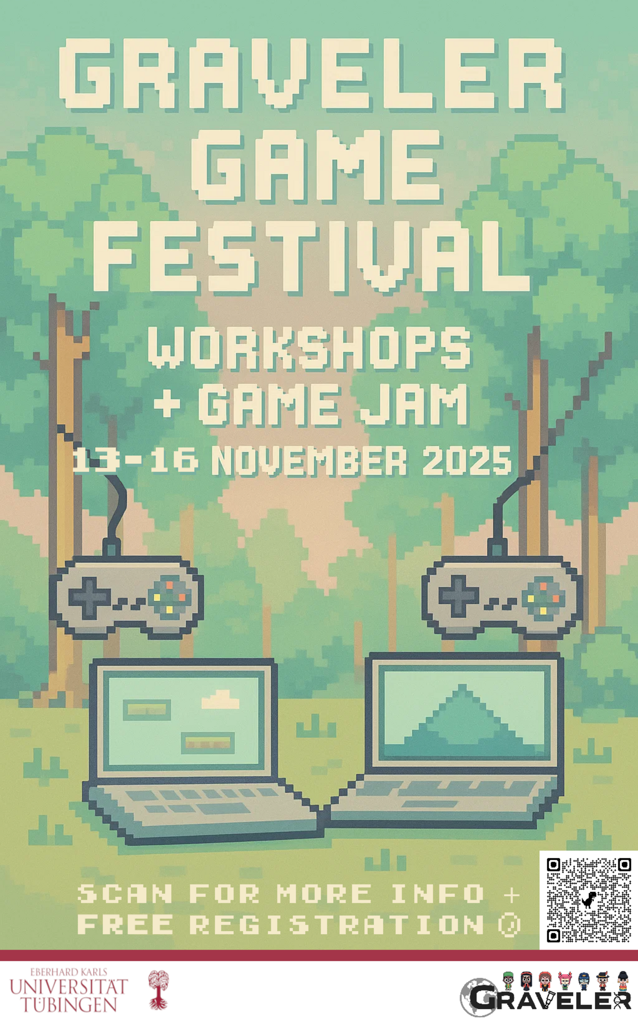 For our Game Festival from November 13th to November 16th, we have planned workshops with experts on games, serious games, and game-based learning for lecturers and anyone interested on Thursday, November 13th. From November 14th to November 16th, a Hackathon will take place, which is open to anyone interested. Here, teams will create a game, for which there are different tracks. For example, the focus on serious games (the DigiEduHack track) or the ICFA track, which focuses on French culture. During this time, there will also be regular expert sessions with experts from the industry. Students at the University of Tübingen have the opportunity to earn 3 ECTS credits (since it is now too late to register in Alma, this is no longer possible). To do so, you must register via Alma. As places are limited, everyone must register by November 10th using this form.