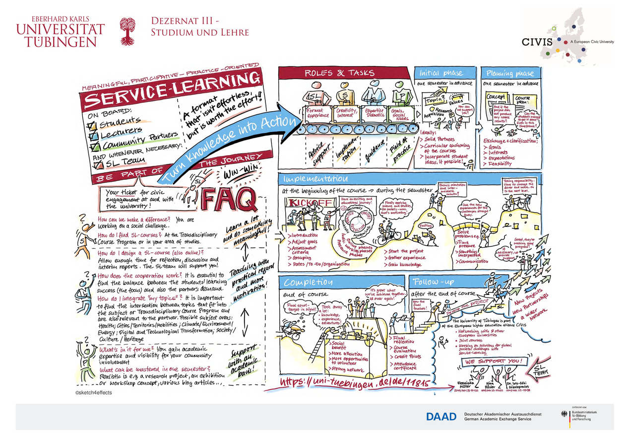 Students, lecturers and community partners contribute to Service-Learning courses on an equal footing. This enables them to put what is learned into practice, reflect on research and address socially-relevant issues – bringing added value to everyone involved.As part of the CIVIS project, our Service-Learning courses gain an international dimension.