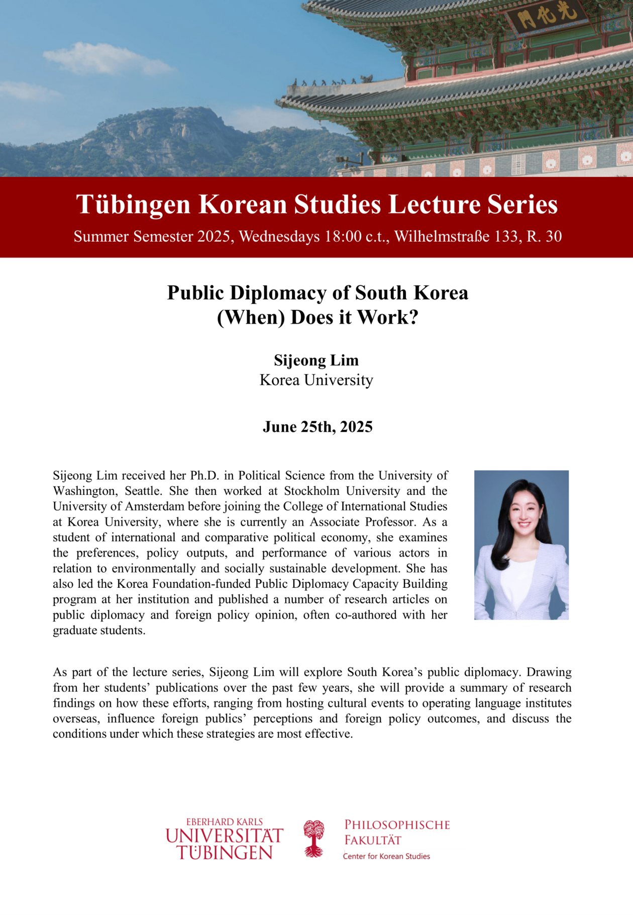 ● Abstimmungszeitraum: 19.06 - 25.06. 2025 (Online) Der Link zur Abstimmung wird allen Teilnehmern des Sejong Instituts und den Studierenden der Koreanistik Tübingen per E-Mail zugeschickt.