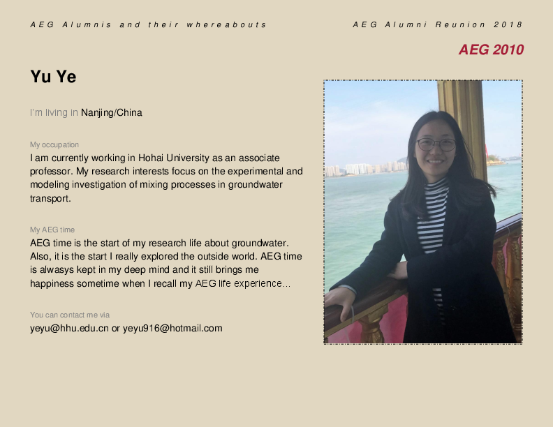 AEG graduates are also well trained for jobs in environmental agencies, non-governmental organizations, and (re-)insurance companies covering costs of environmental risks and remediation. Furthermore, AEG lays an excellent foundation for doctoral studies in programs of earth sciences, environmental sciences, and environmental engineering.