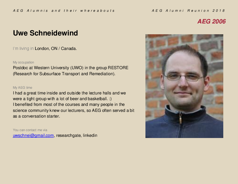 Applied & Environmental Geoscience (AEG) is an international research-oriented study program focusing on the evaluation and solution of environmental problems.