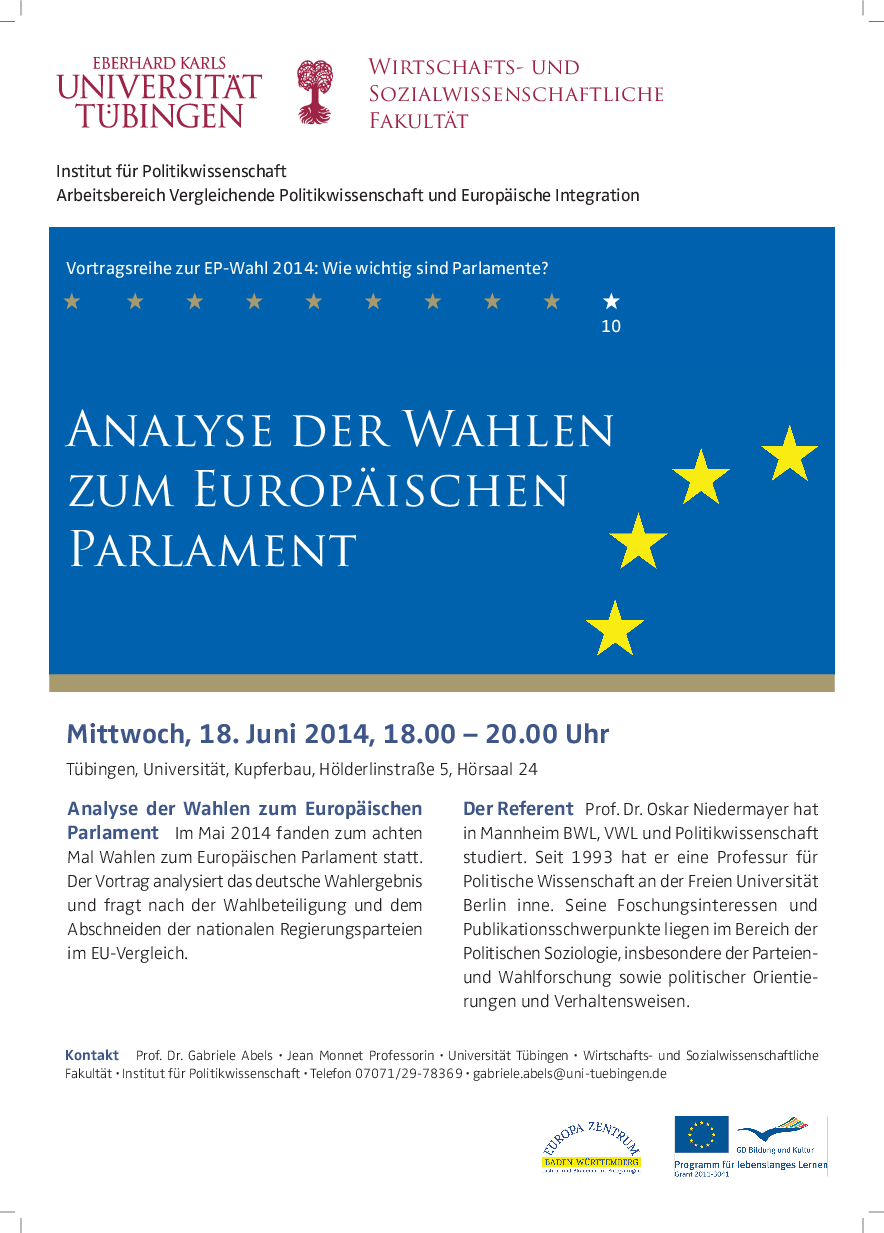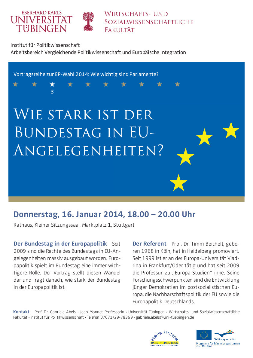 The lecture series is concerned with the question which role the European Parliament, the German Bundestag and the German state parliaments can play on the different levels of European politics. What has changed after the new EU-treaty from 2009?