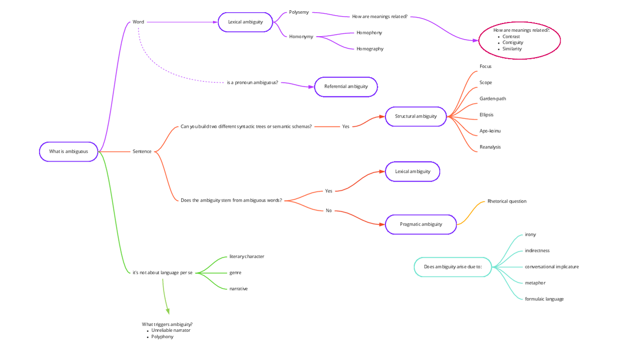 Die Grafik veranschaulicht die Verbindungen zwischen den einzelnen Ambiguitätsphänomenen in der Datenbank. Die Darstellung dient der Übersicht der TInCAP-Inhalte sowie als Richtlinie für Annotator*innen.