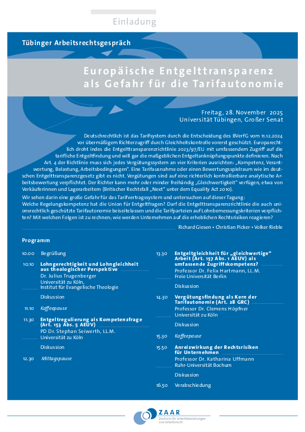Tübinger Arbeitsrechtsgespräch am 28. November 2025