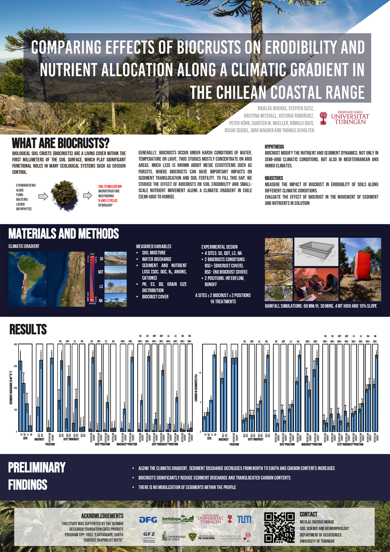 The annual workshop of the DFG-funded German-Chilean research initiative “EarthShape – Earth Surface Shaping by Biota” is currently held online via video-conferencing. Over the course of three days, all participating scientists will exchange their latest results. On the first day, PhD student Nicolas Riveras Munoz and PI Prof. Thomas Scholten presented the work of our subproject together with collaborators from Universidad de Chile, GFZ Potsdam, TU München and University of Copenhagen.