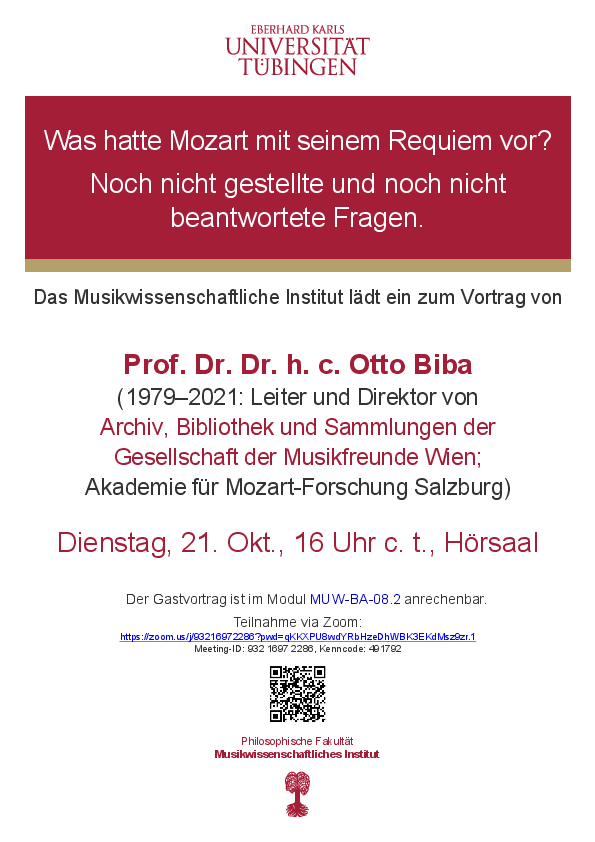 Gastvortrag "Was hatte Mozart mit seinem Requiem vor?" von Prof. Dr. Dr. h. c. Otto Biba