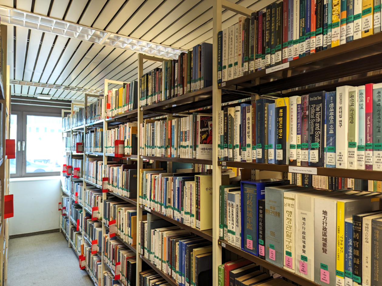 Die Koreanistik-Bibliothek beinhaltet ca. 20.000 Medieneinheiten und umfasst den umfangreichsten Zeitschriftenbestand aller koreanistischer Universitätsseminare Europas.