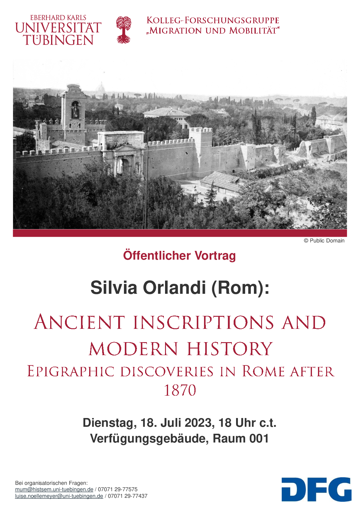 Die KFG "Migration und Mobilität" lädt im Rahmen des Kolloquiums des Seminars für Alte Geschichte (Tübingen) herzlich zum vorletzten Vortrag des Semesters ein. Es spricht unsere derzeitige Gastwissenschaftlerin Silvia Orlandi, Professorin für Lateinische Epigraphik an der Sapienza (Rom).