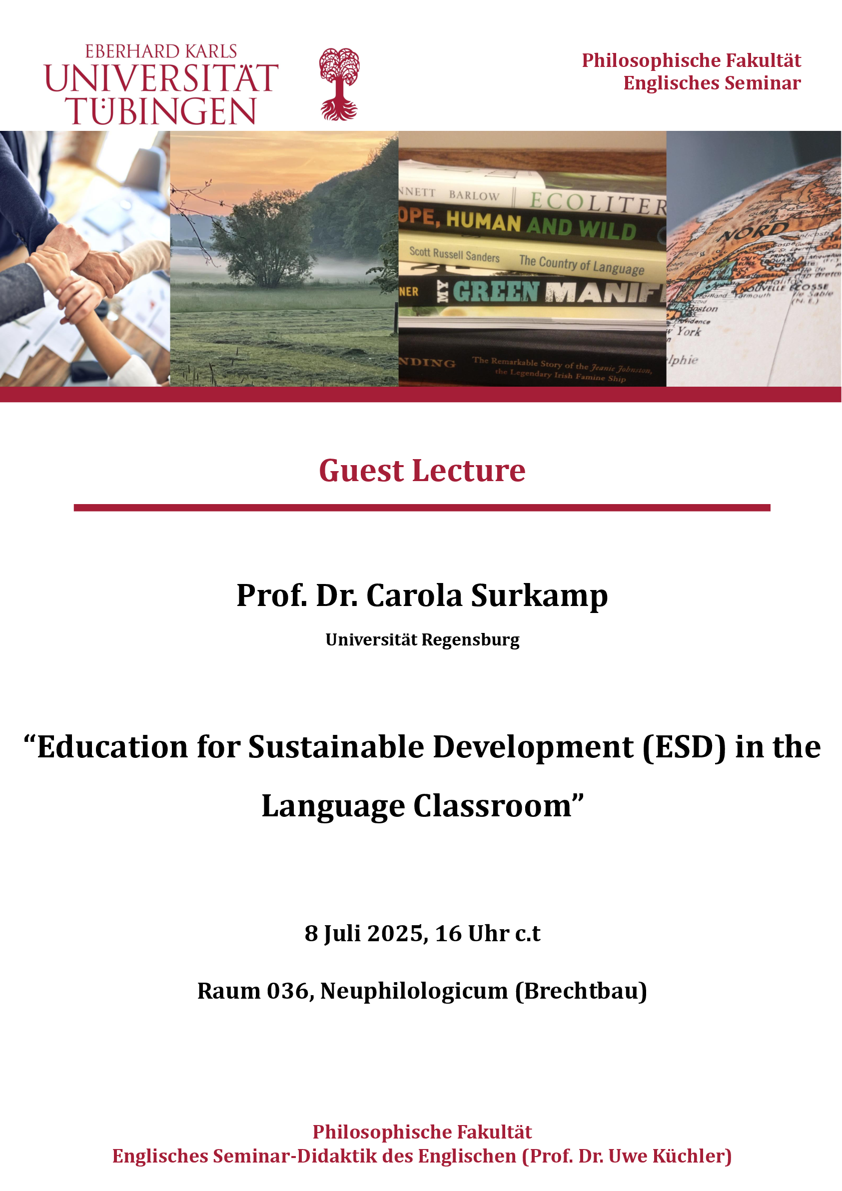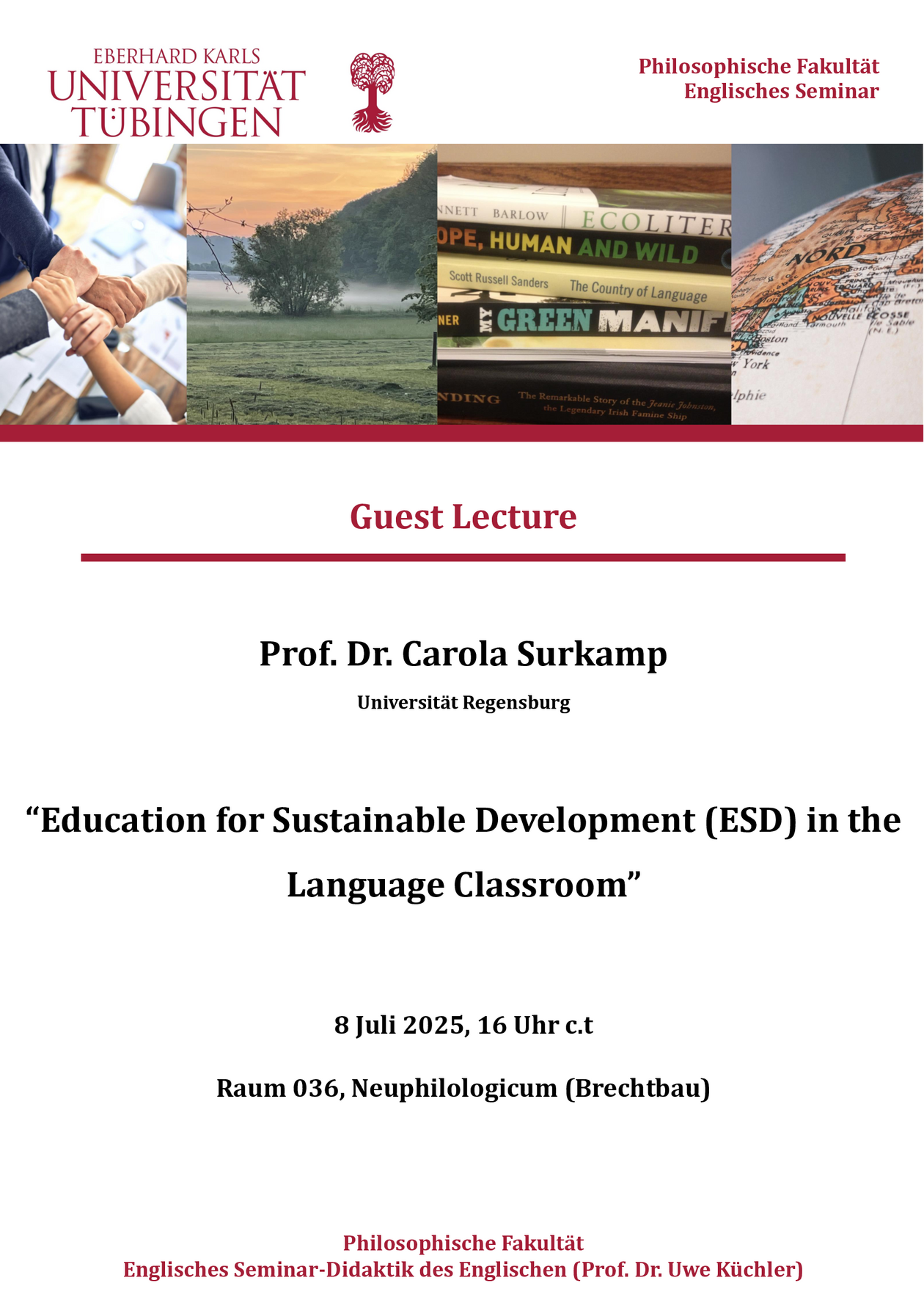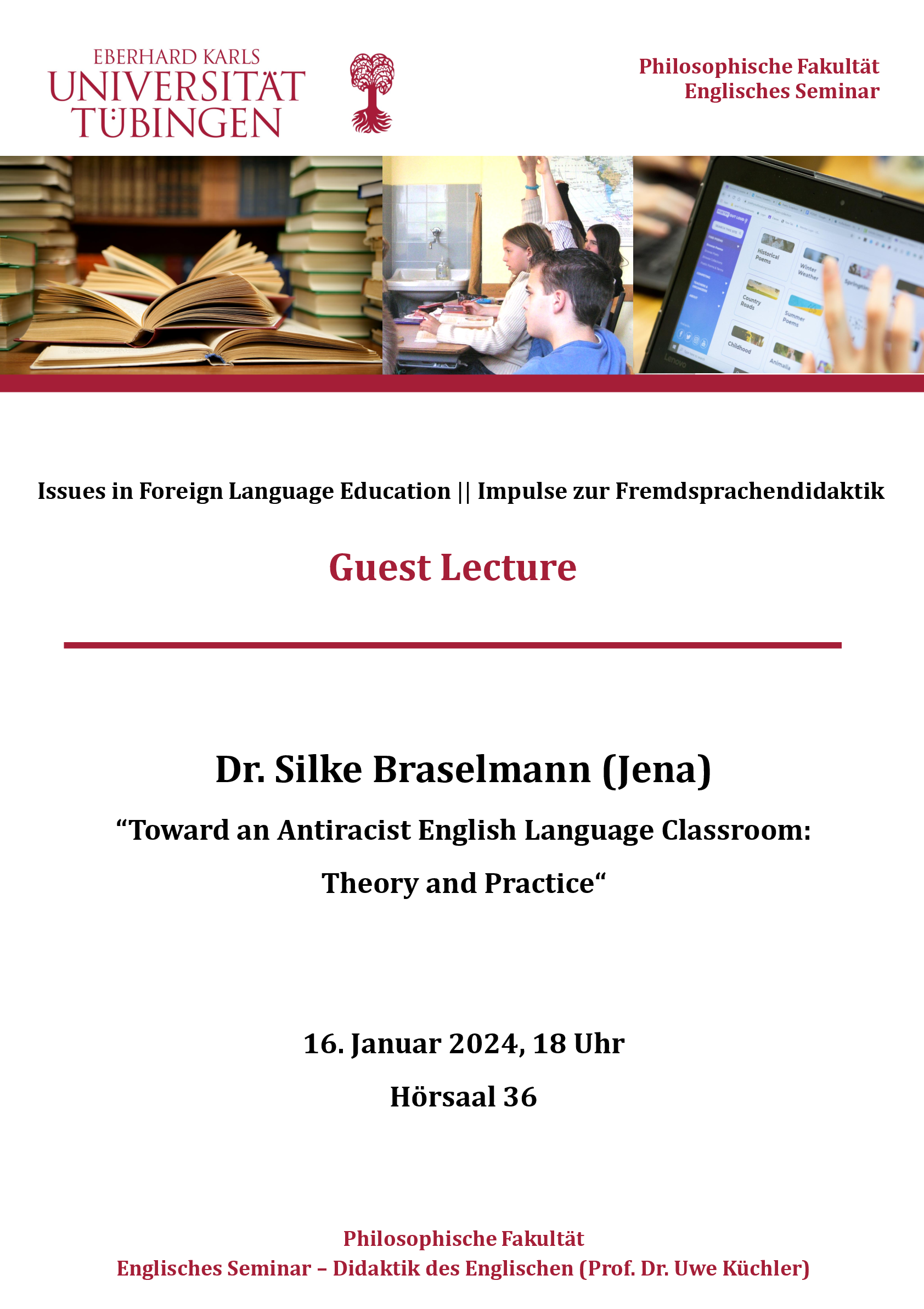 The University of Tübingen and the English Department are excited and honored to host this year’s annual convention of the GAAS. Organizing this conference on “Political Education and American Studies” is a token for the close cooperation between American Studies and the Teaching of English as a Foreign Language – a field that has grown beyond a narrow focus on language to include intercultural competences, knowledge about inclusion and diversity, and a sensitivity to global issues of our time. With this conference, we want to acknowledge the political significance of our work, emphasize our cooperation with the Tübingen School of Education, but also to schools and places of learning outside the university, and cherish the intensive ties between students in different programs, teachers-to-be and mentors as well as the interrelation of theories and practices of pedagogy: This conference and its topic speaks to the specific situation of scholarship and scholarly practices here in Tübingen. And shortly before the university will be led by its first female rector since 1477, we want to take the opportunity to acknowledge our current president and fellow American Studies scholar Bernd Engler for his support in restructuring and redefining the education of teachers here in Tübingen.