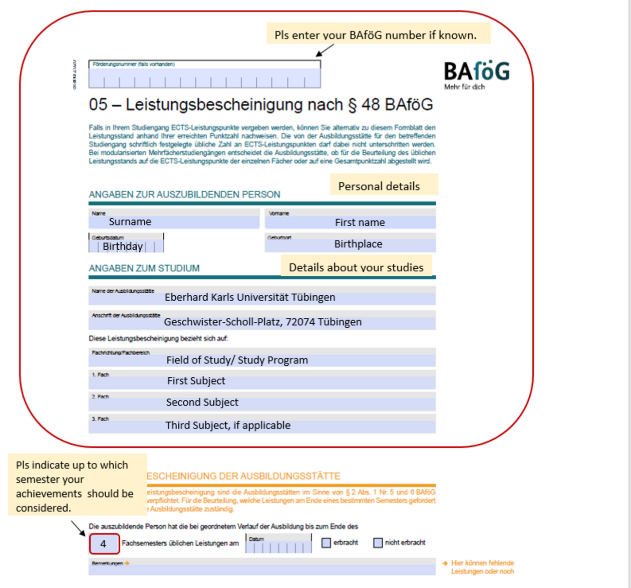 The certificate is issued by the BAföG advisors of the English department.
