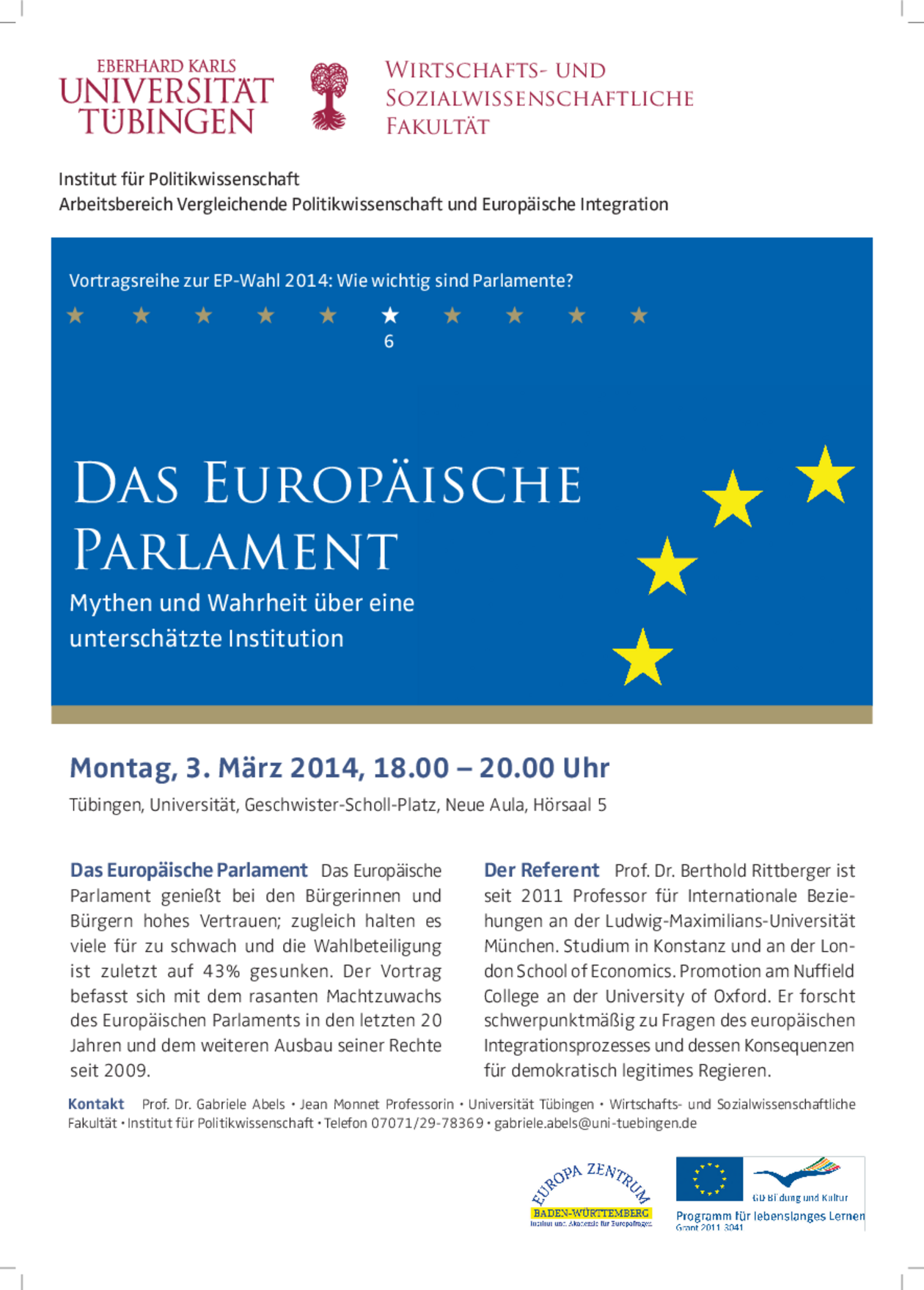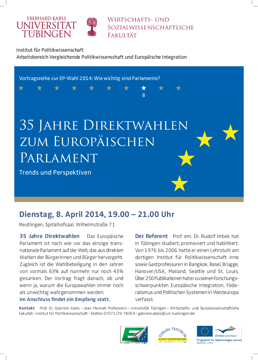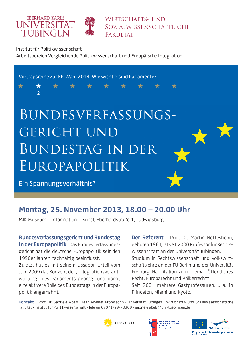 The lecture series is concerned with the question which role the European Parliament, the German Bundestag and the German state parliaments can play on the different levels of European politics. What has changed after the new EU-treaty from 2009?