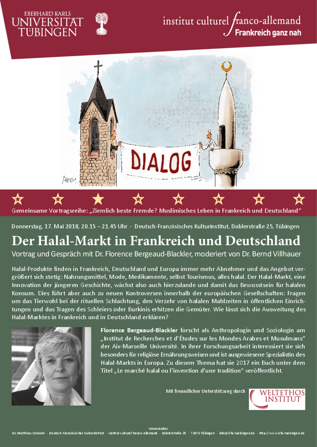 Die Veranstaltungsreihe wird vom Deutsch-Französischen Kulturinstitut Tübingen e.V. in Kooperation mit dem Zentrum für Islamische Theologie, dem Institut für Politikwissenschaft , dem Weltethos-Institut und der Stiftung Weltethos sowie dem Deutsch-Amerikanischen Institut Tübingen organisiert und veranstaltet.
