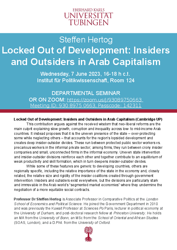 Departmental Seminar: Locked Out of Development: Insiders and Outsiders in Arab Capitalism