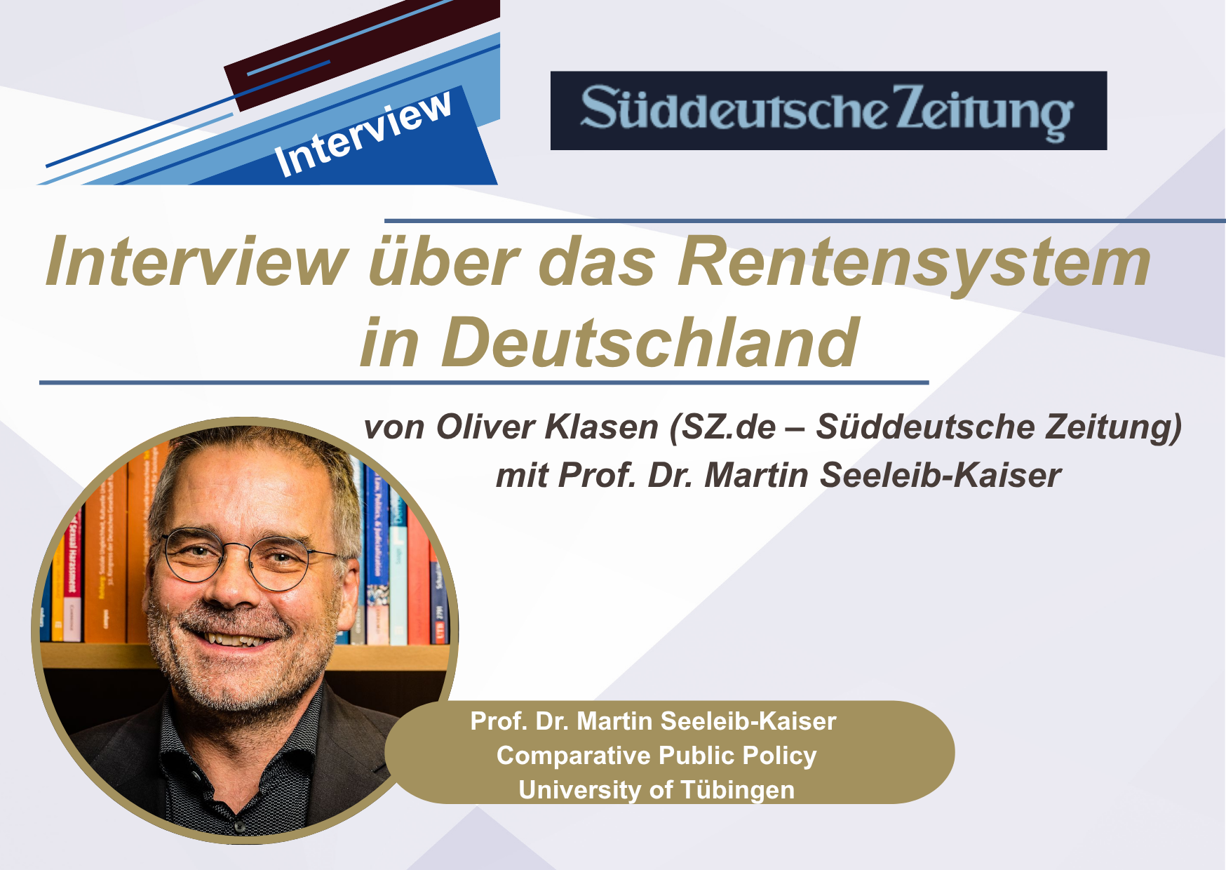 Am 10. Oktober 2025 führte Oliver Klasen von SZ.de – Süddeutsche Zeitung ein Interview mit Prof. Dr. Martin Seeleib-Kaiser, Professor für Comparative Public Policy an der Universität Tübingen. Unter dem Titel „Das Problem mit den Boomern hätte man vor 40 Jahren lösen müssen“ diskutiert Prof. Seeleib-Kaiser verschiedene Vorschläge zur Reform des deutschen Rentensystems.
