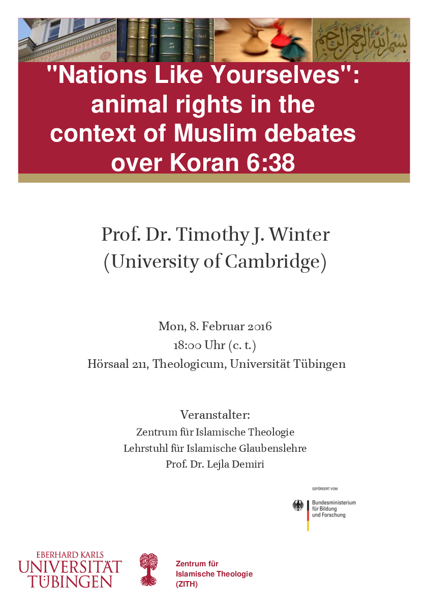 Vortrag: Prof. Dr. Timothy J. Winter (University of Cambridge): Nations Like Yourselves": animal rights in the context of Muslim debates over Koran 6:38