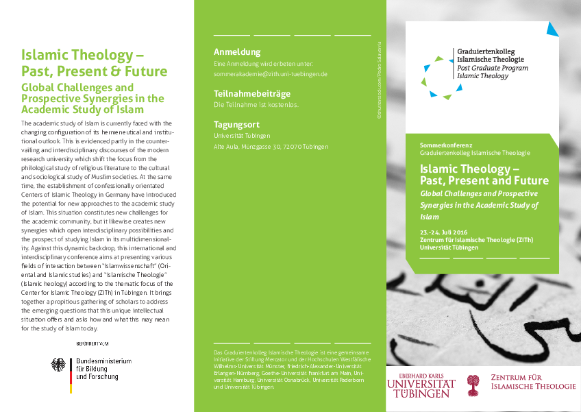 Das ZITh veranstaltet im Rahmen der diesjährigen Mercator Sommer-Akademie in Tübingen eine internationale Tagung vom 23.07.2016 – 24.07.2016 zu dem Thema "Islamic Theology – Past, Present and Future. Global Challenges and Prospective Synergies in the Academic Study of Islam".