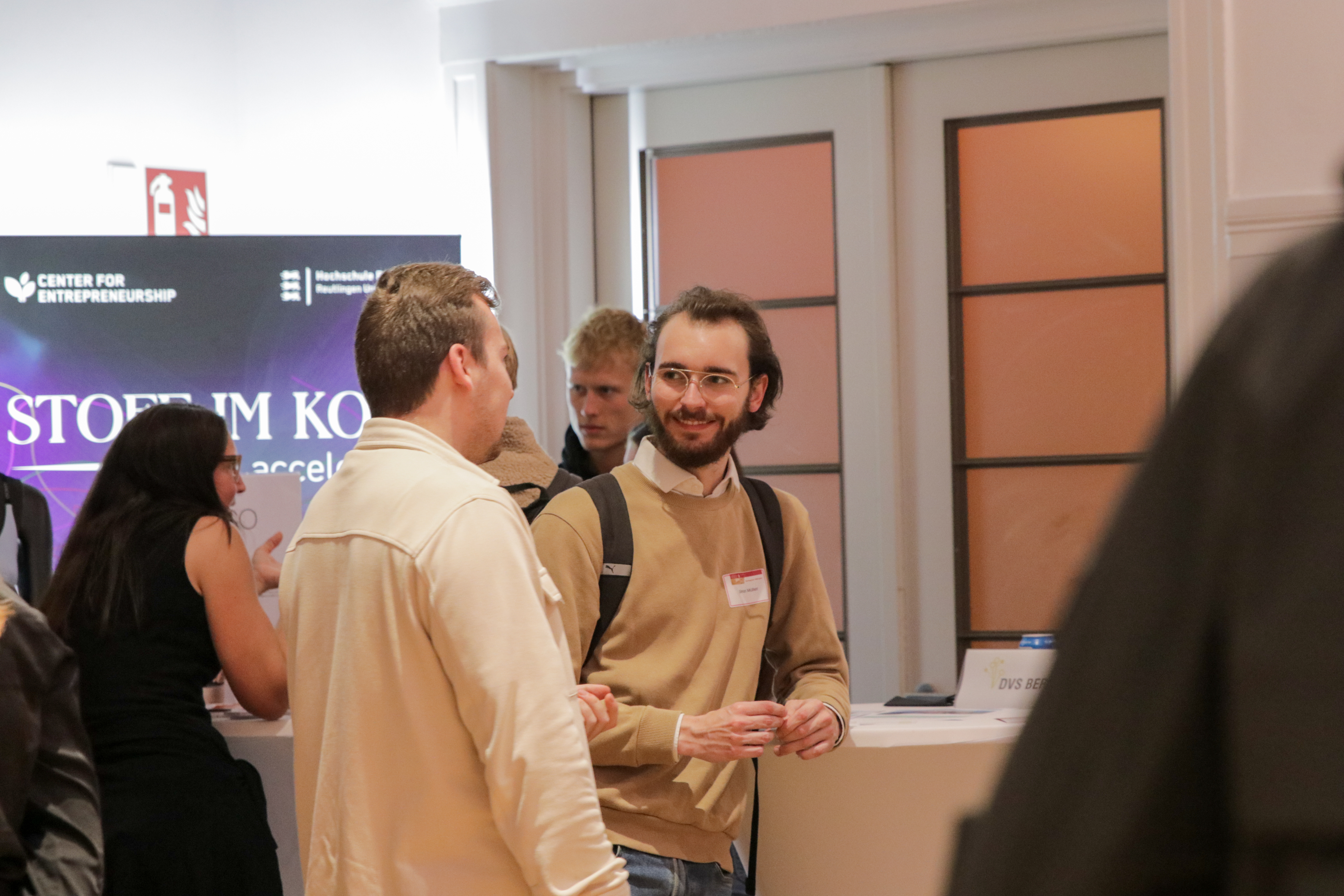 Fabian Huber, ehemaliger Jura-Student an der Universität Tübingen und Gründer von unibev, schilderte seinen Weg vom Studierenden zum Unternehmer. Bei ihm begann alles mit dem Projekt „Freibier für Uni-Partys“. Während seines Studiums war er für die Biermarke Wulle im Marketing aktiv und belieferte Tübinger Studierendenpartys. Nach dem Studium entschied er sich, weitere Innovationen in der Getränkebranche zu realisieren. Zudem empfand Fabian Huber sowohl die juristische Welt als auch die Strukturen bei Wulle als sehr starr. Der Wunsch, Dinge freier zu gestalten und eigene Ideen umzusetzen, führte schließlich zur Gründung von unibev. Gemeinsam mit vier engen Freunden verfolgte das Unternehmen das Ziel die Getränkebranche schneller und innovativer zu machen. Sein juristisches Know-how erwies sich dabei als hilfreich. Die wachsende Komplexität im Unternehmen (heute 15 Mitarbeitende) brachte aber auch neue Herausforderungen mit sich. Fabian Huber beschrieb “Hiring” als ein Kernthema. Es ist seiner Erfahrung nach wichtig, früh genug mit Leuten zu reden, die diesen Weg schon gegangen sind.