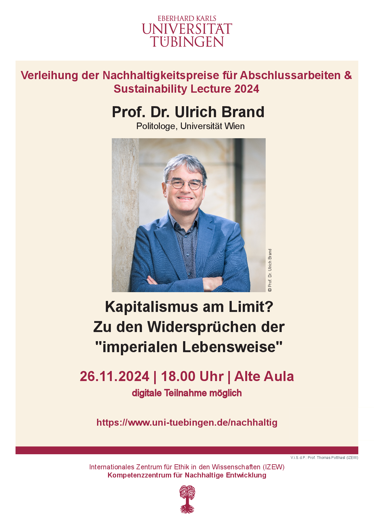 Am 26. November 2024, um 18:00 Uhr in der Alten Aula (Münzgasse 30, Tübingen).