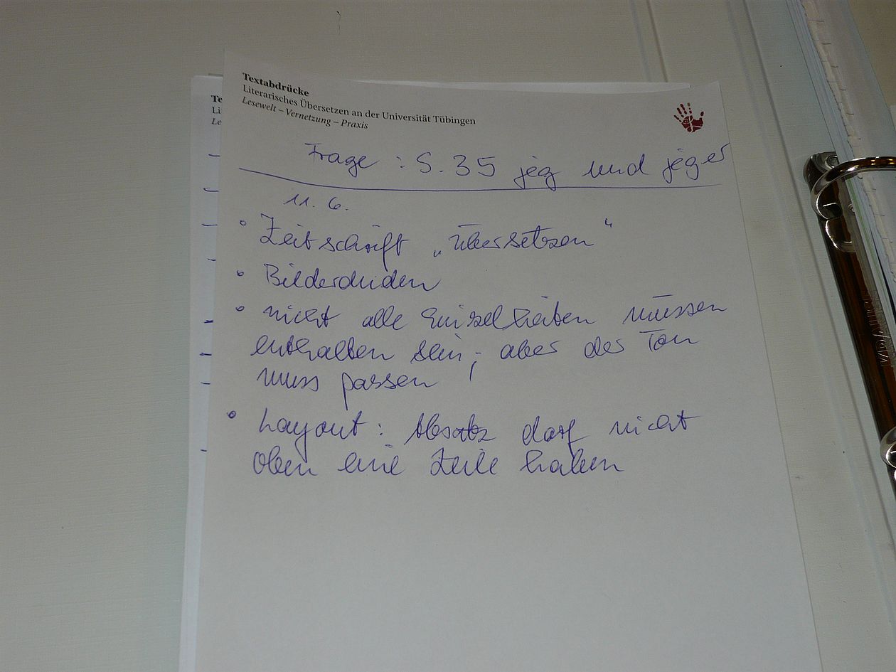 "Ich werde jetzt literarische Übersetzerin", sagte Sybille Bauer aus Freiburg nach dem Tübinger Seminar, "denn mit 65 habe ich jetzt genau das richtige Alter, als ehemalige Deutschlehrerin bin ich im Deutschen sattelfest und auch das Norwegische kann ich gut verstehen und erfühlen." So sicher waren sich nicht alle Teilnehmer und Teilnehmerinnen in der Auswertung des dreitägigen Seminars. Christoph Strauch sagte, er wisse es noch nicht genau, wie es mit ihm als Übersetzer weiterginge, denn er stünde noch am Anfang und hätte es noch gar nicht recht ausprobiert. Laura Glawion (Tübingen) war zunächst verunsichert: "Ich dachte immer, ich hätte ein gutes Sprachgefühl. Nun sehe ich, dass es sehr schwer ist, gute Formulierungen zu finden." Felix Unger (Tübingen) fand das Seminar erfrischend und impulsgebend: "Es war eine sehr spannende Auseinandersetzung mit den Texten, angenehm anders als die sonstige Beschäftigung mit der Theorie." Auch Christel Hildebrandt nimmt einige neue Erfahrungen mit zurück nach Hamburg. "Wenn ich allein über meinen Übersetzungen sitze, habe ich nicht den Luxus, so viele Anregungen zu bekommen. Das Seminar war auch für mich eine Fortbildung, eine seltene Chance, mich mit Experten auszutauschen."