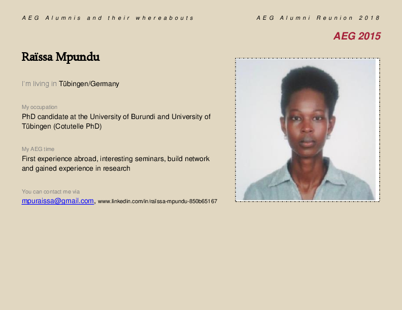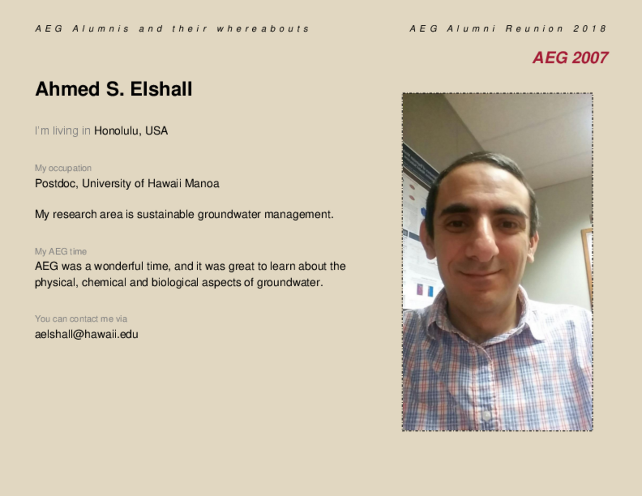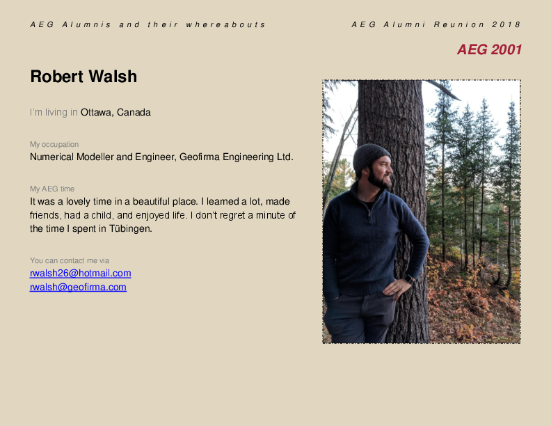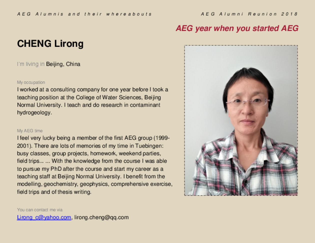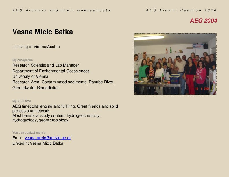 Applied & Environmental Geoscience (AEG) is an international research-oriented study program focusing on the evaluation and solution of environmental problems.