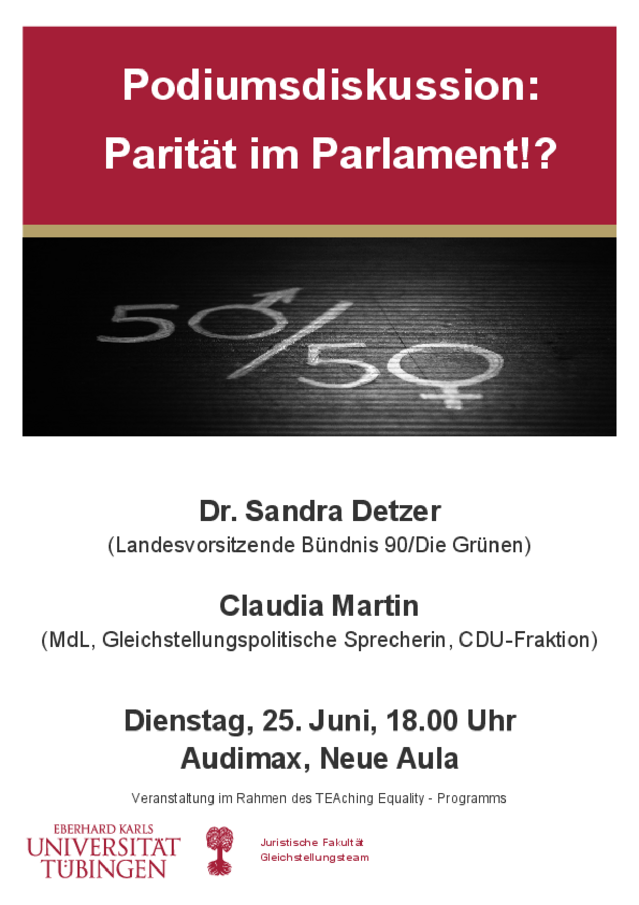 25.06.2019: Podiumsdiskussion: Parität im Parlament!? mit Dr. Sandra Detzer (Landesvorsitzende Bündnis 90/Die Grünen) und Claudia Martin (MdL, Gleichstellungspolitische Sprecherin, CDU-Fraktion)