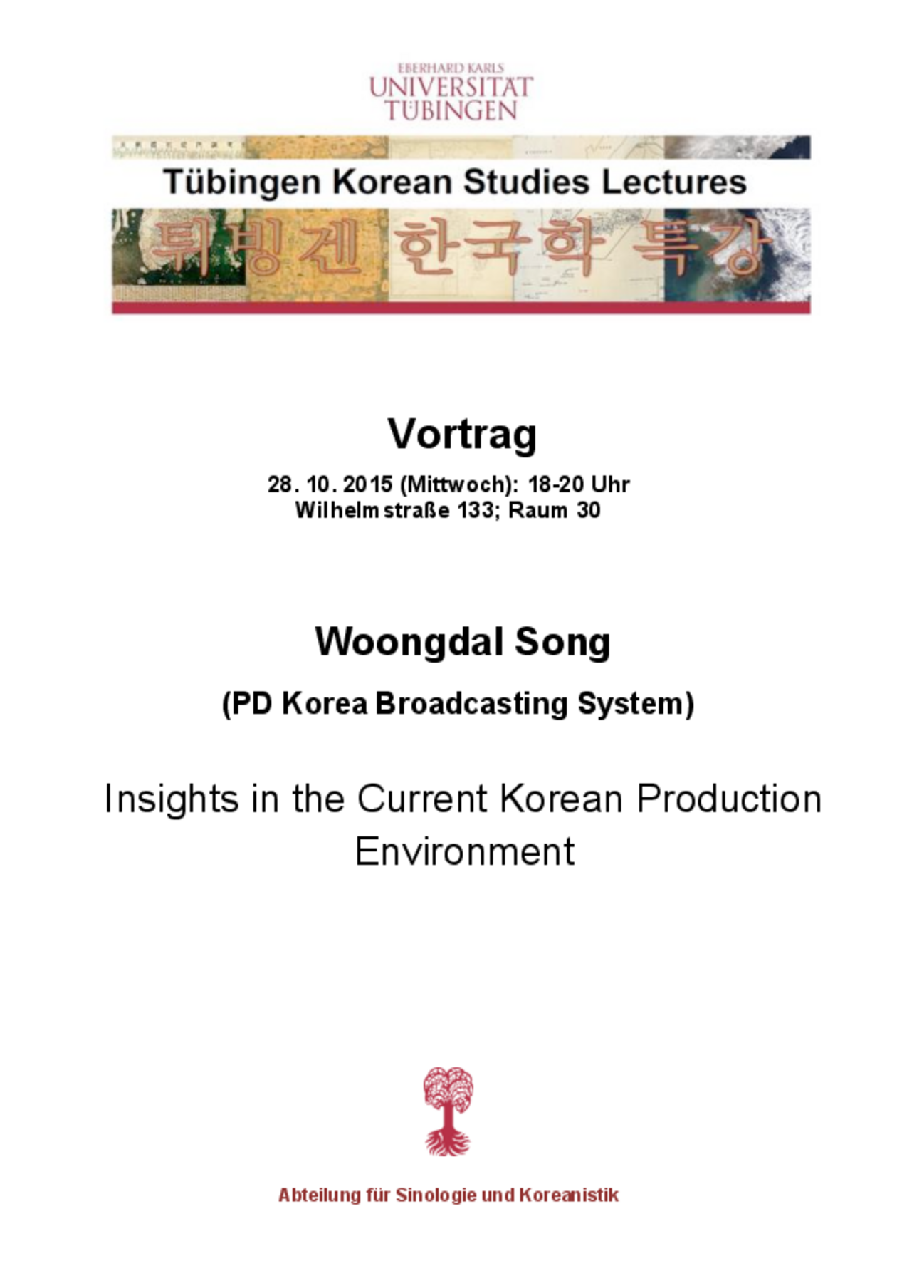 Prof. Stephen Epstein (Victoria University of Wellington, Neuseeland) wird einen Vortrag zu koreanischer Indiemusik halten und anschließend den gleichnamigen Dokumentarfilm (Link Trailer) aus dem Jahr 2014 zeigen. Prof. Epstein hat den Film gemeinsam mit Timothy Tangherlini produziert, in dem die koreanische Indie- und Punk-Szene portraitiert wird.