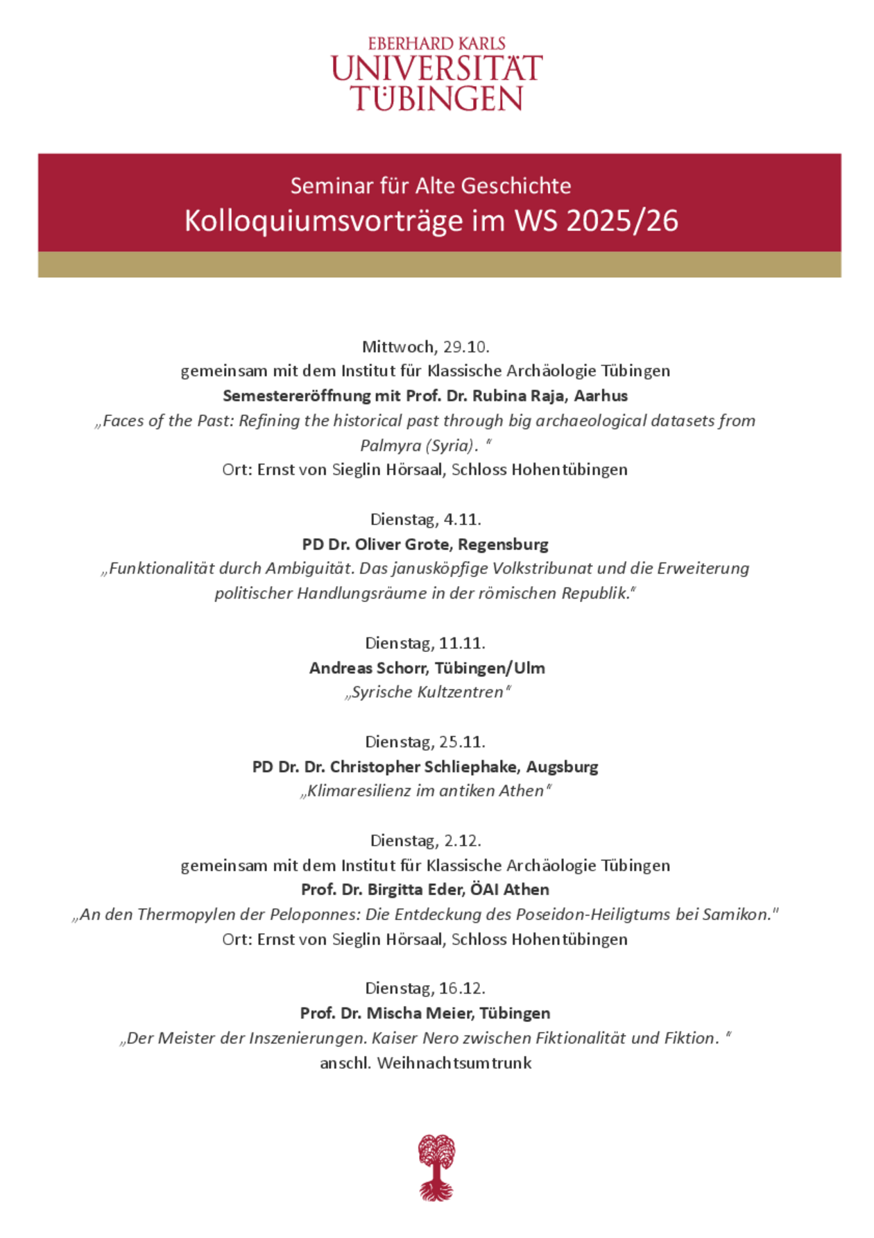 Kolloquium des Seminars für Alte Geschichte