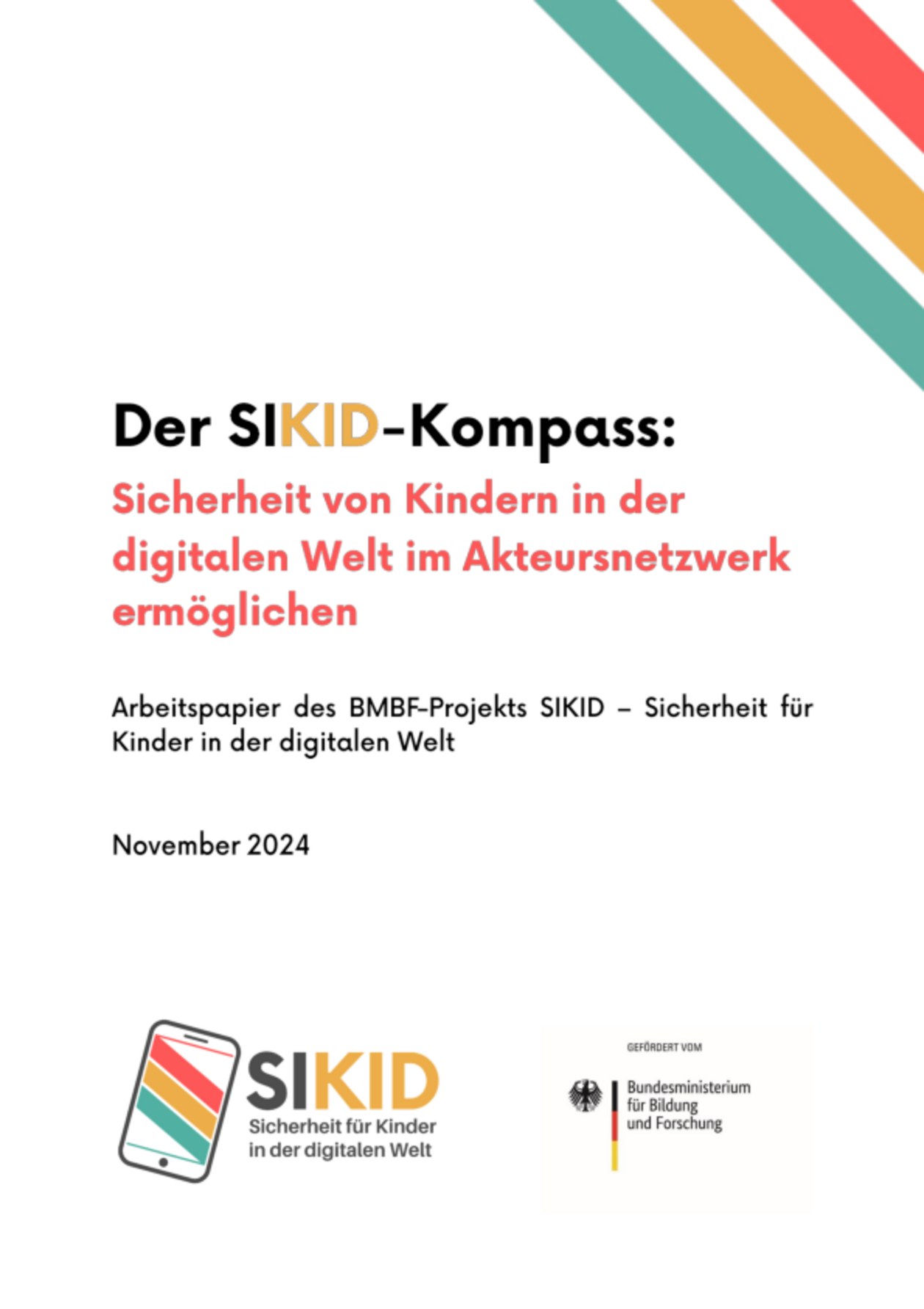 Stapf, Ingrid/Schelenz, Laura/Dreyer, Stephan/Pfetsch, Jan/Lampert, Claudia/Andresen, Sünje/Paschel, Felix/Thiel, Kira/Wysocki, Neda/Pfisterer, Sonja/Heesen, Jessica (2024): Der SIKID-Kompass: Sicherheit von Kindern in der digitalen Welt im Akteursnetzwerk ermöglichen. Tübingen: IZEW, Materialien zur Ethik in den Wissenschaften, Band 25, Zenodo, 10.5281/zenodo.14179984